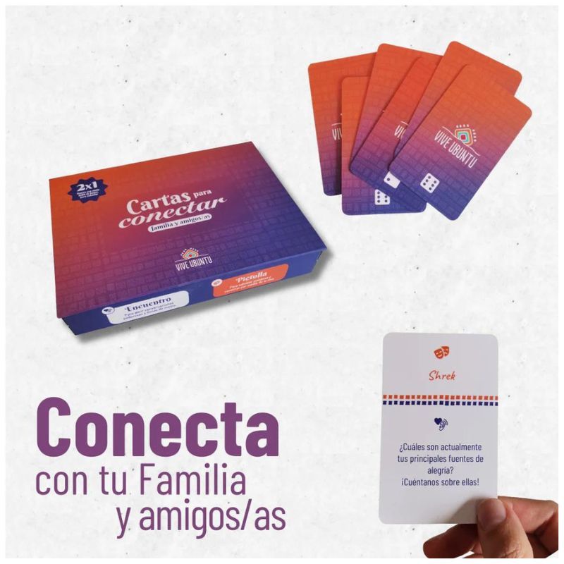 En Vive Ubuntu creemos que cada reunión con tus seres queridos puede convertirse en una celebración de la vida y del cariño que se tienen. Por eso hemos creado un juego 2 en 1 que combina lo mejor de la diversión y la profundidad.