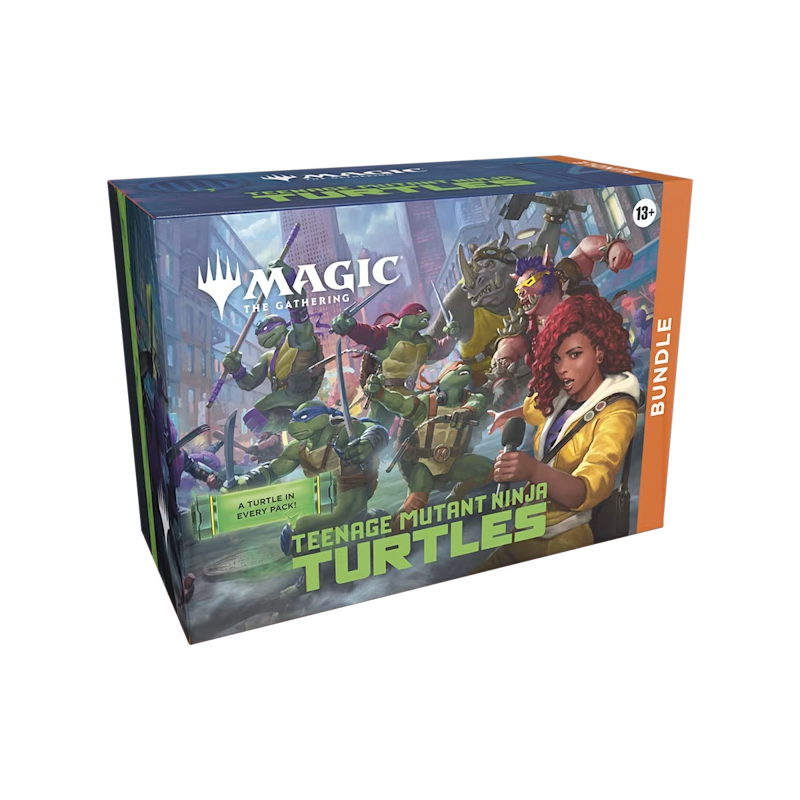 ¡Las tortugas ninja se estrenan en el campo de batalla para darle una dosis cuádruple de caos mutante a Magic: The Gathering! Colecciona, construye y combate con una increíble plantilla de aliados y enemigos que llevan más de cuatro décadas cosechando una tremenda afición tortuguil. ¡Dales cien vueltas a los matones de Shredder con la nueva mecánica de infiltración y potencia la fuerza de tu equipo con fichas de Mutágeno para triunfar con los verdaderos héroes de Nueva York!