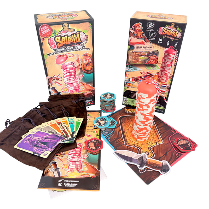 Este título llega para encender las mesas con su espíritu party game, ideal para grupos de amigos y amantes del humor absurdo. En Salami, los jugadores asumen el rol de héroes como monjes, goblins o bárbaros que, tras fallar estrepitosamente su última misión, han perdido, su oro y su dignidad… quedándoles solo una opción: ¡comer!